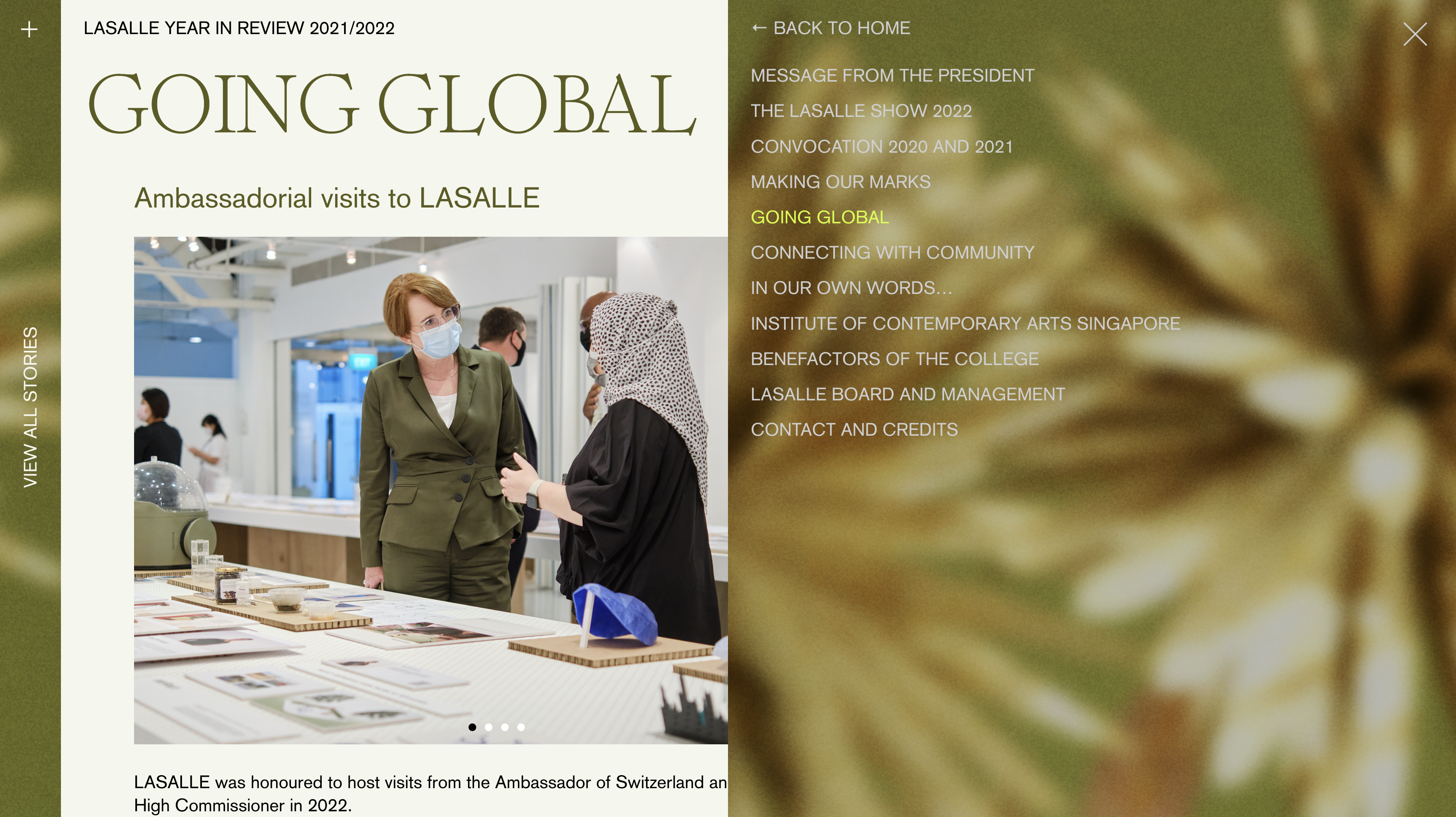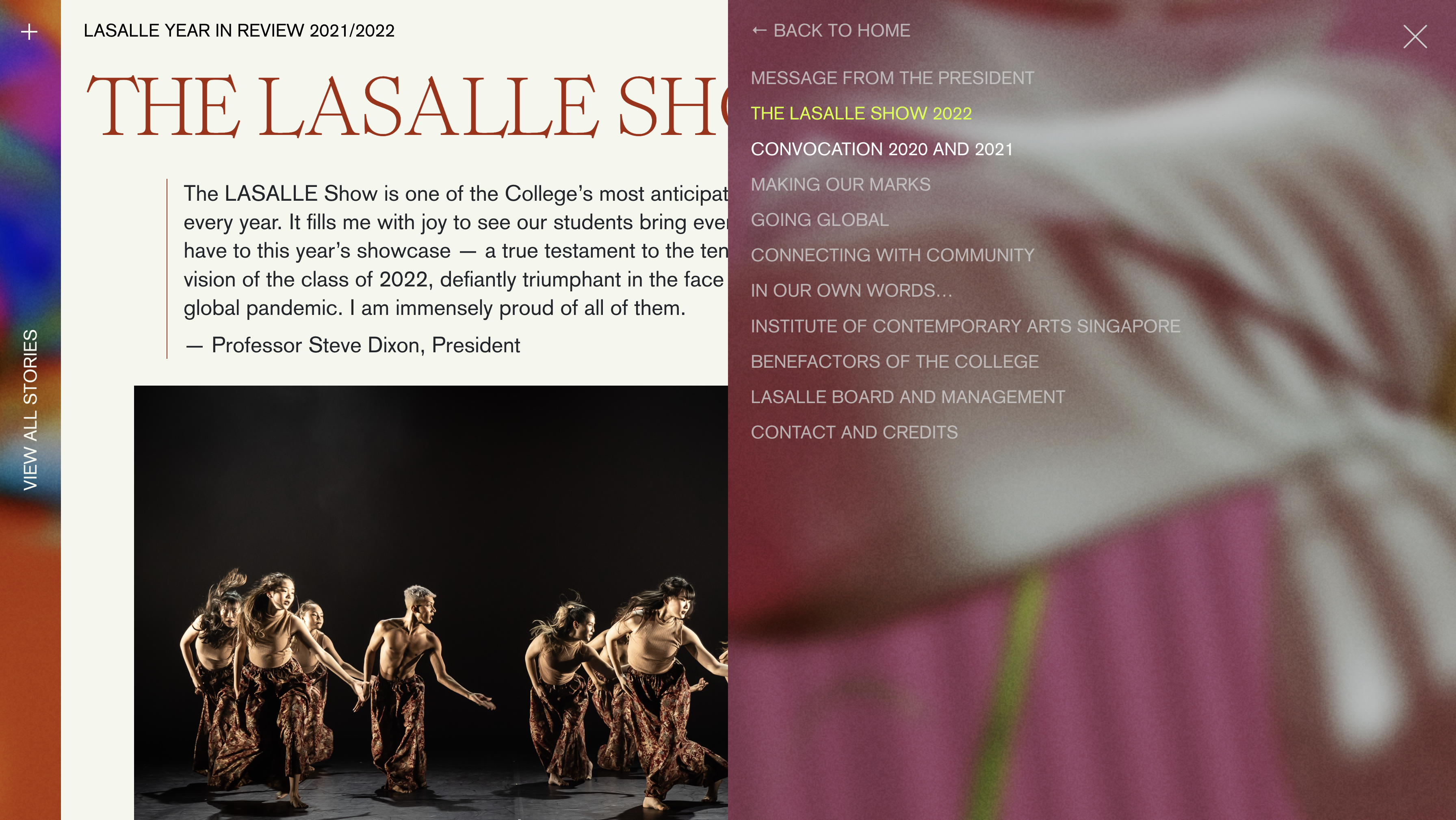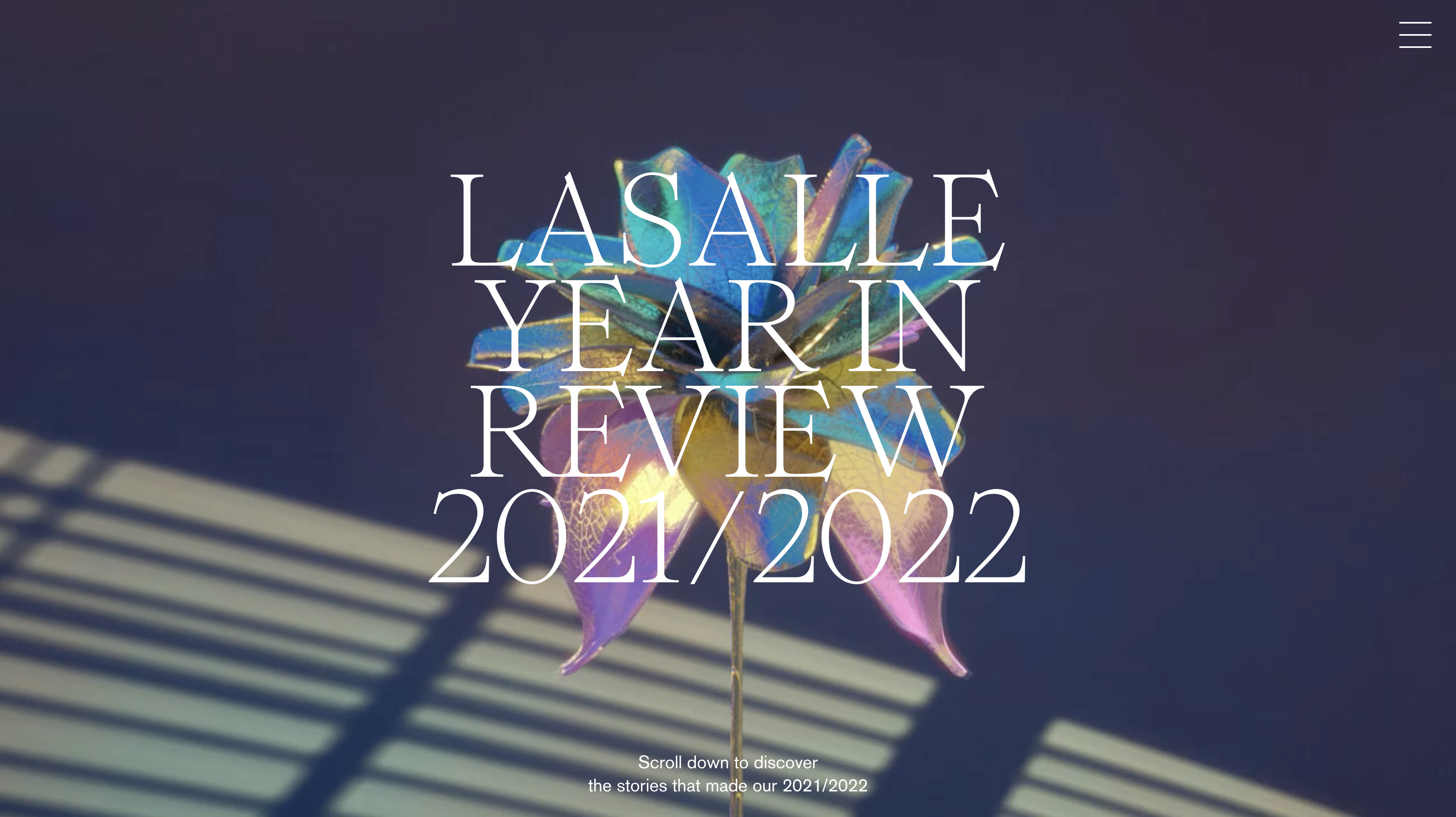 The LASALLE Year in Review (YIR) is an annual publication that captures and celebrates the College's highlights, achievements, headline events and collaborations of the year. Chockfull of stories, photos and videos you won't want to miss.